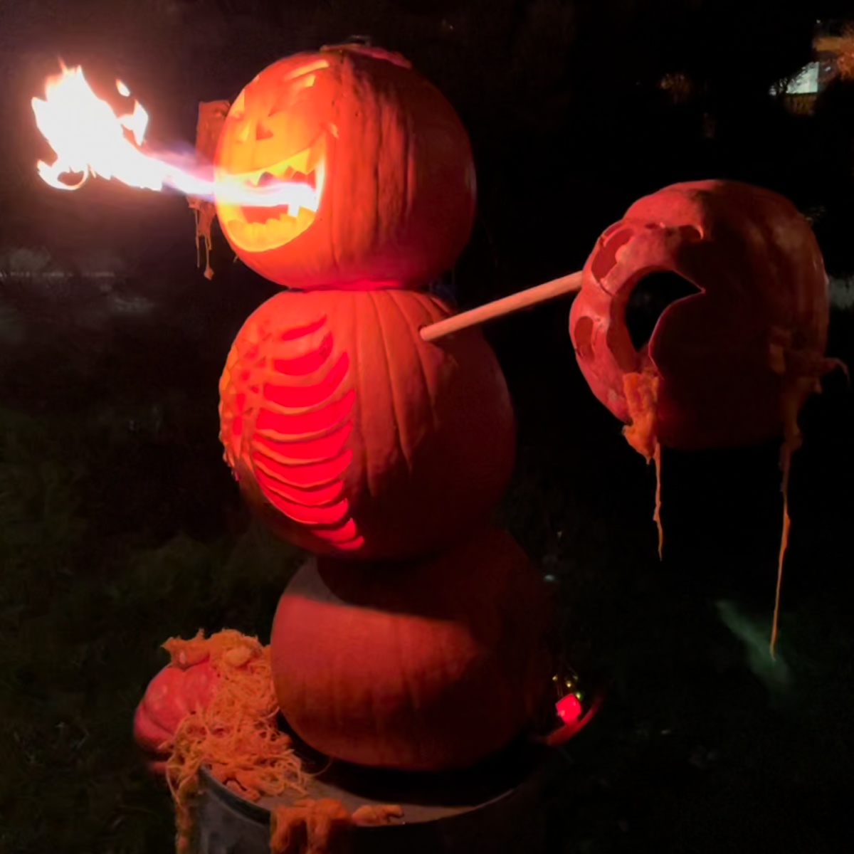 Last Halloween we made a fire breathing pumpkin man 🙂